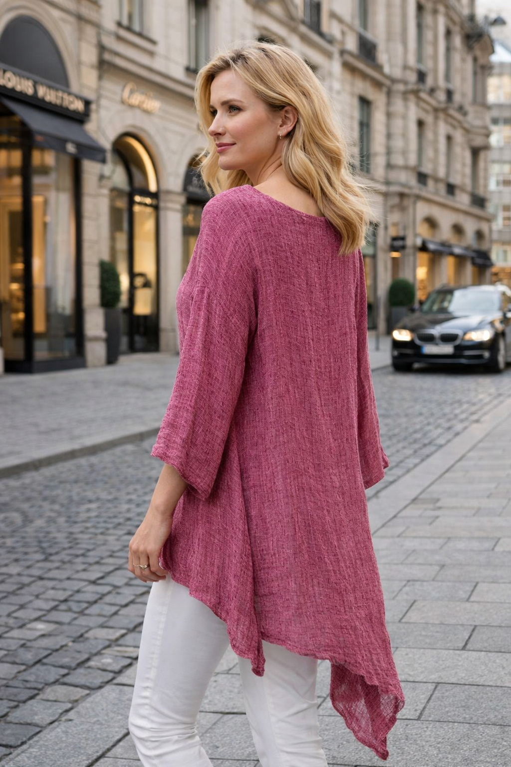 Damenbluse – Einfarbig, Baumwoll-Leinen, Irregularer Tunika-Schnitt