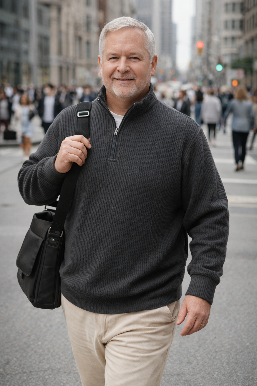 Der DAAN Zip-Pullover ist für Männer gemacht, die mühelos gepflegt aussehen wollen, ohne auf Komfort zu verzichten. Dies ist so ein Kleidungsstück, das du immer wieder aus dem Schrank holst: angenehm zu tragen, leicht zu kombinieren und immer passend für deinen Tag. Egal, ob du unterwegs bist, von zu Hause aus arbeitest oder das Haus verlässt – DAAN verleiht dir eine ruhige, selbstbewusste Ausstrahlung mit genau der richtigen Balance zwischen lässig und stilvoll.