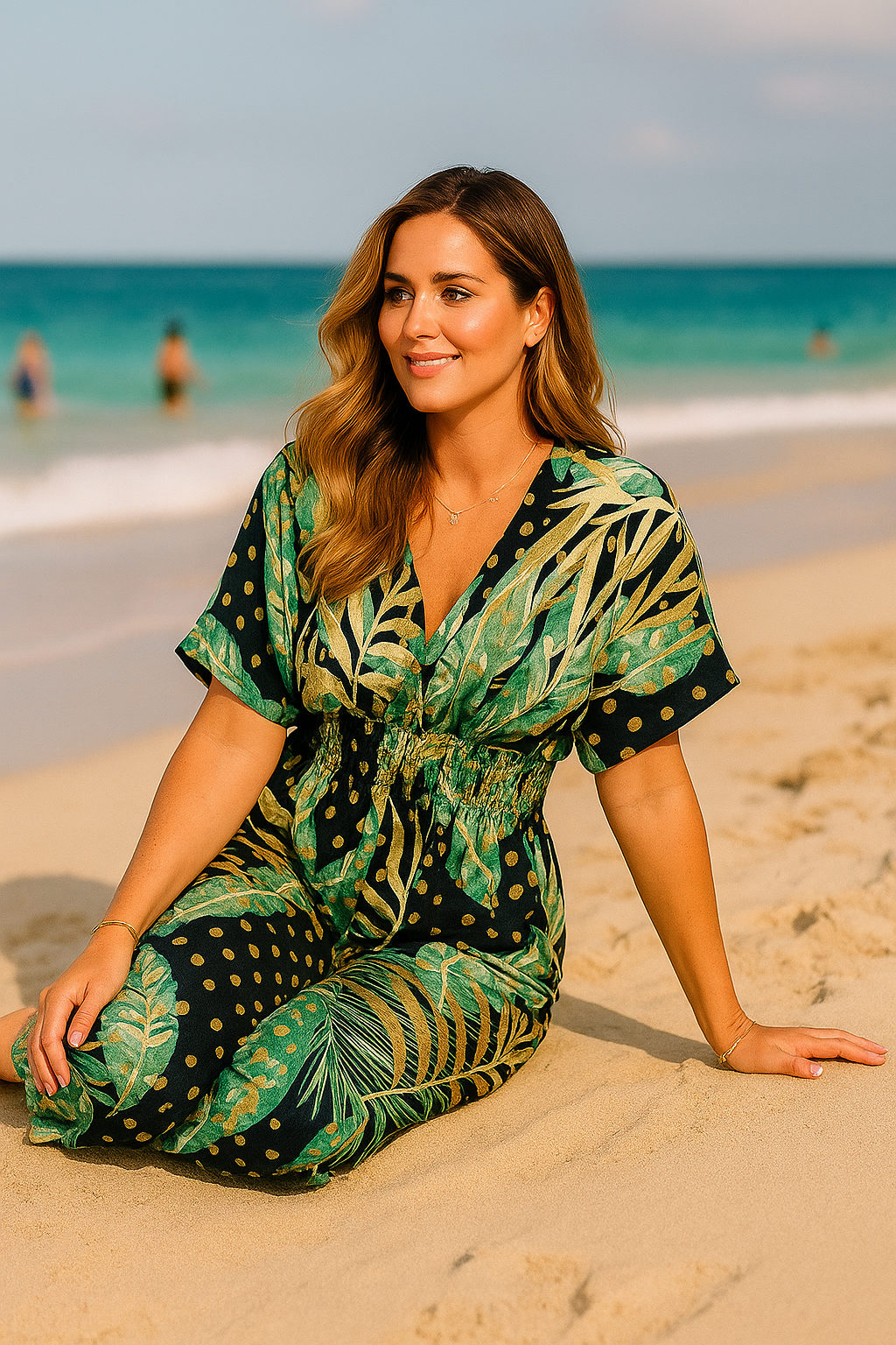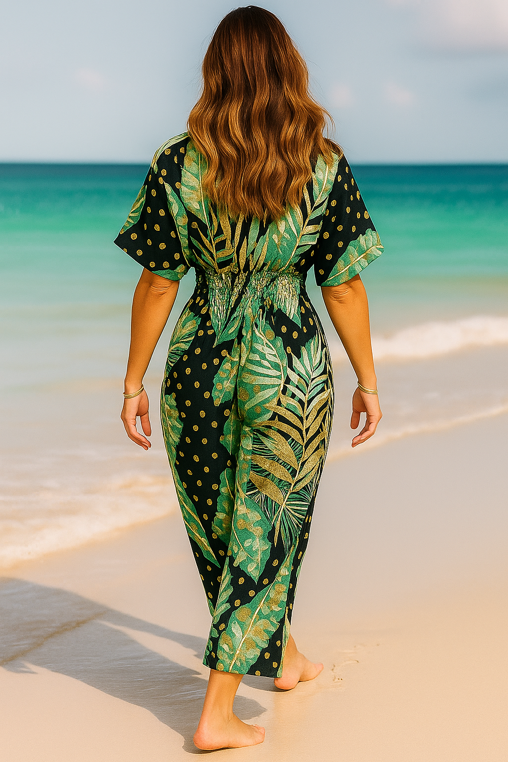 SOMMER REGENWALD STIL: Es hat einen trendigen Blätterdruck, der Ihrem sommerlichen Look eine lebendige und tropische Note verleiht.